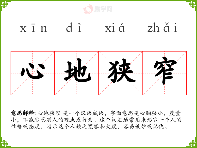 心地狭窄 这个成语源自古代汉语,其中“心地”指的是人的内心或性格,“狭窄”则形容空间或视野的小。随着时间的推移,这个词汇被广泛用于描述人的性格特征。