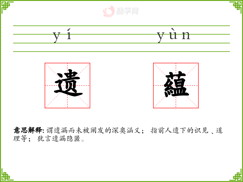遗藴的意思是:谓遗漏而未被阐发的深奥涵义; 指前人遗下的识见﹑道理等; 犹言遗漏隐匿。