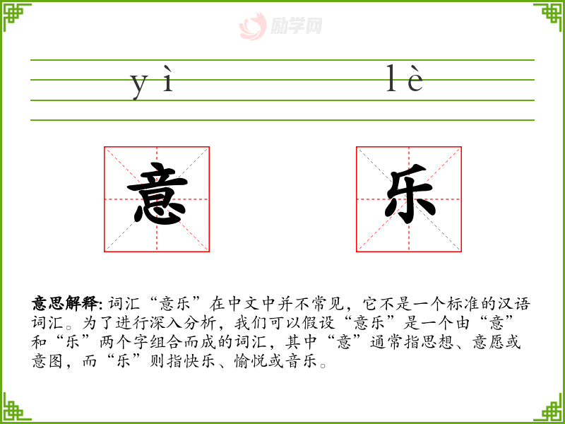 词汇“意乐”在中文中并不常见,它不是一个标准的汉语词汇。为了进行深入分析,我们可以假设“意乐”是一个由“意”和“乐”两个字组合而成的词汇,其中“意”通常指思想、意愿或意图,而“乐”则指快乐、愉悦或音乐。