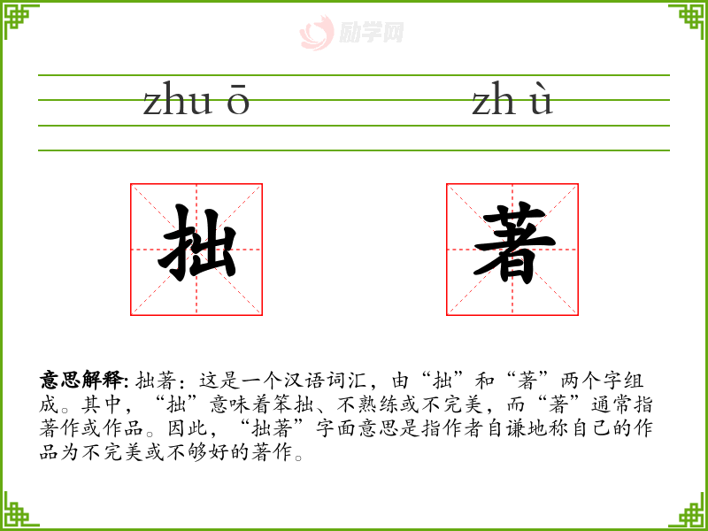 1.拙著的拼音是什么?拙著怎么读?