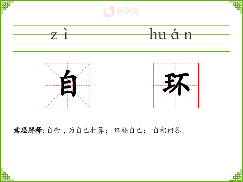 自环的意思是:自营﹐为自己打算; 环绕自己; 自相问答。