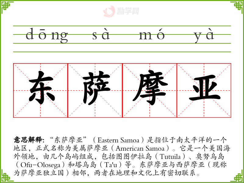 1.东萨摩亚的拼音是什么?东萨摩亚怎么读?