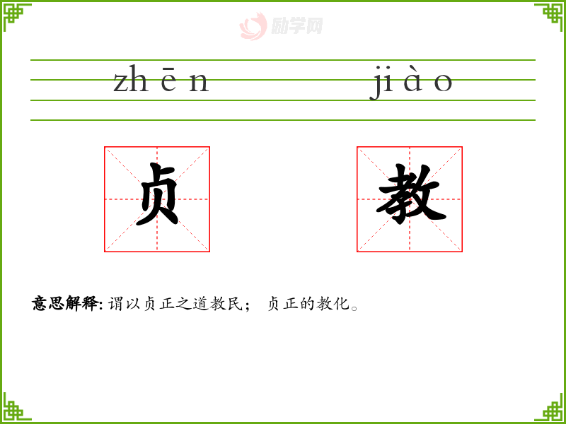 贞教的意思是:谓以贞正之道教民; 贞正的教化。