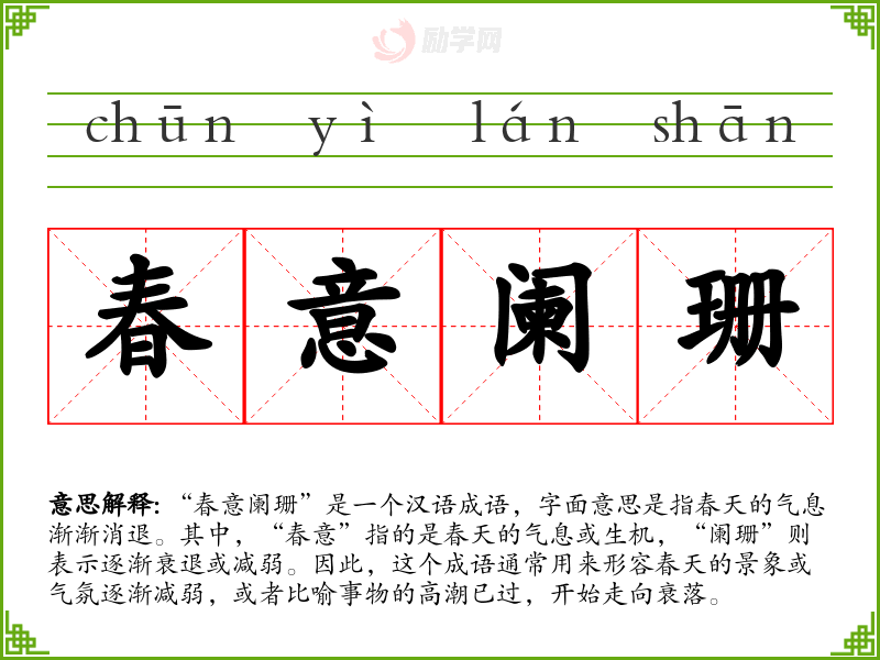 1.春意阑珊的拼音是什么?春意阑珊怎么读?
