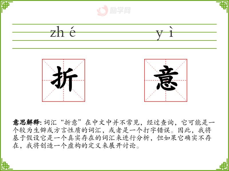 尽管“折意”可能是一个生僻词汇,或是一个打字错误,通过假设和创造性的分析,我们可以看到它在语言表达中的潜在用途和意义。在语言学习和表达中,理解这样的词汇可以帮助我们更丰富地表达复杂的情感和情境。
