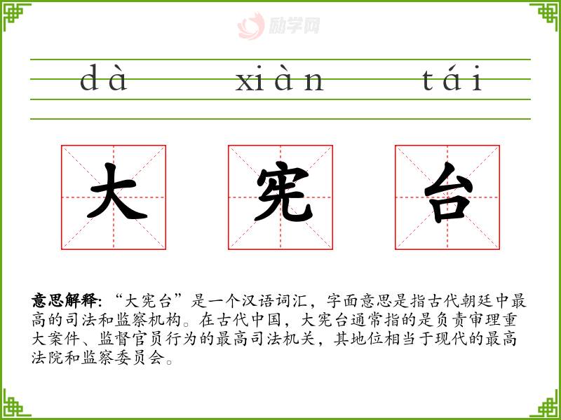 1.大宪台的拼音是什么?大宪台怎么读?