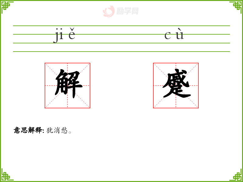 解蹙的意思是:犹消愁。