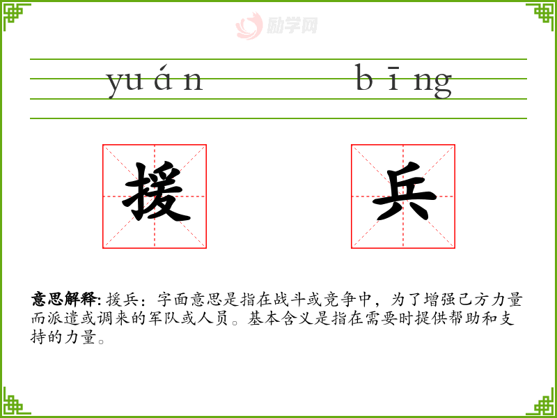 援兵的拼音是:yuán bīng