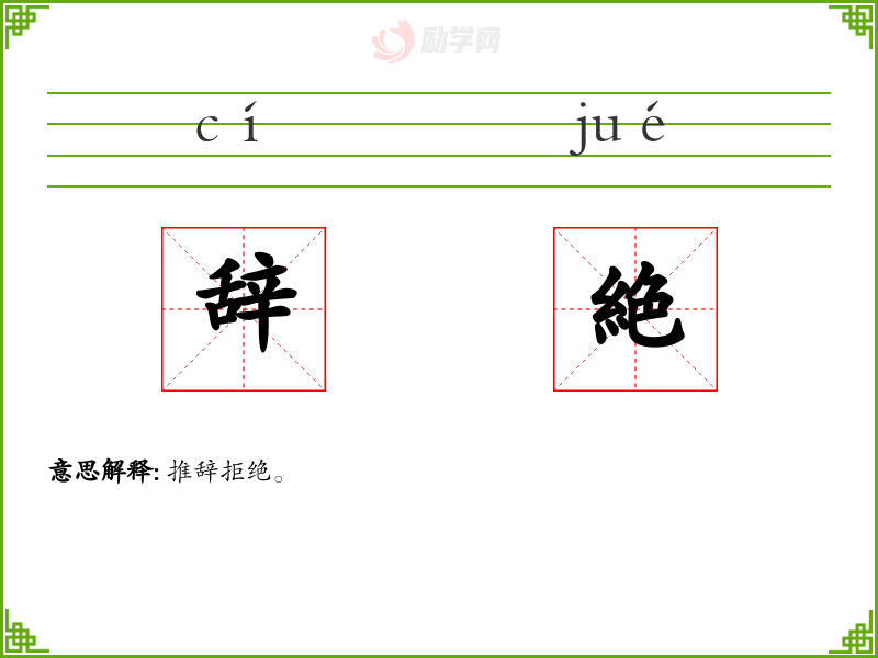 辞[ cí ] 1. (会意。本义:诉讼,打官司)。 2. 同本义。 【引证】 《说文》。按,分争辩讼谓之辞。-辞,讼也。 《后汉书·周纡传》。注:“辞案犹今案牍也。”-善于辞案条教。 《书·吕刑》-皇帝请问下民,鳏寡有辞于苗。 [更多解释]