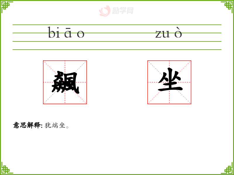 飆坐的意思是:犹端坐。