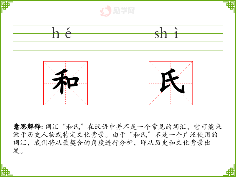 词汇“和氏”在汉语中并不是一个常见的词汇,它可能来源于历史人物或特定文化背景。由于“和氏”不是一个广泛使用的词汇,我们将从最契合的角度进行分析,即从历史和文化背景出发。