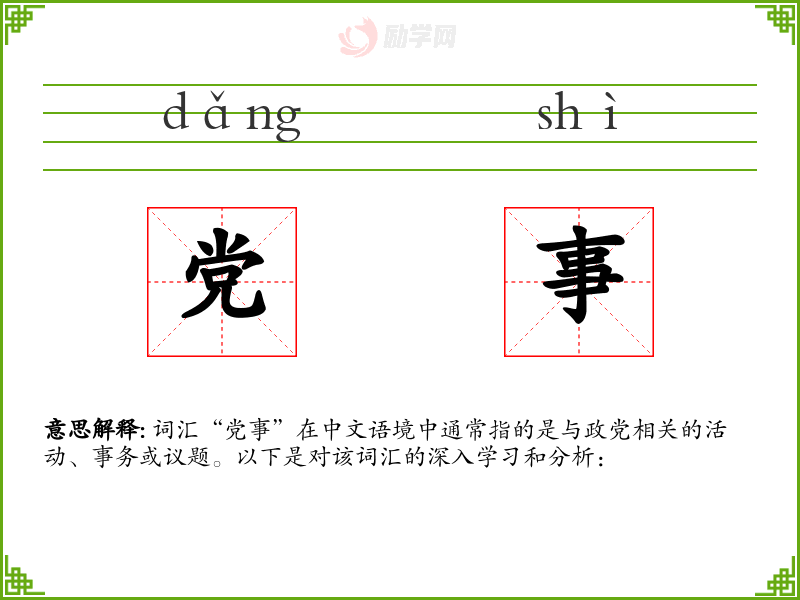 1.党事的拼音是什么?党事怎么读?
