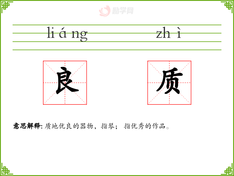 良质的意思是:质地优良的器物,指琴; 指优秀的作品。