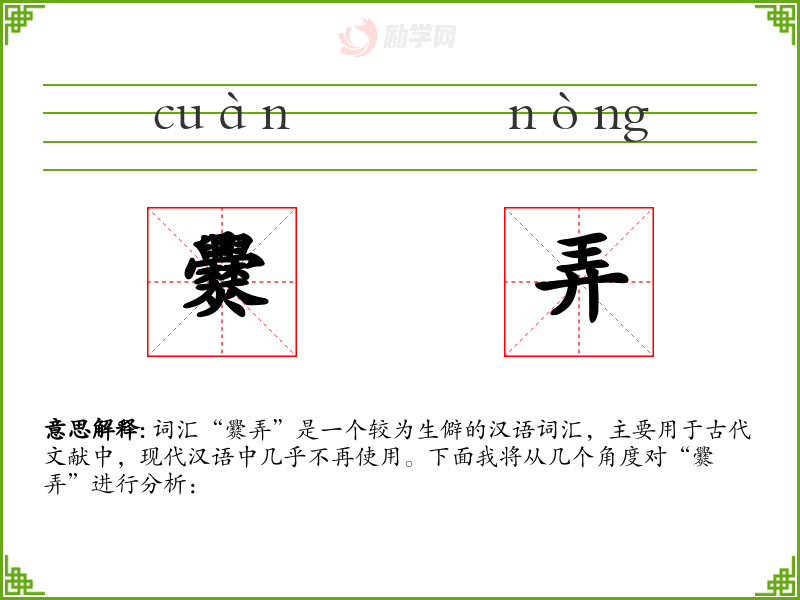 词汇“爨弄”是一个较为生僻的汉语词汇,主要用于古代文献中,现代汉语中几乎不再使用。下面我将从几个角度对“爨弄”进行分析: