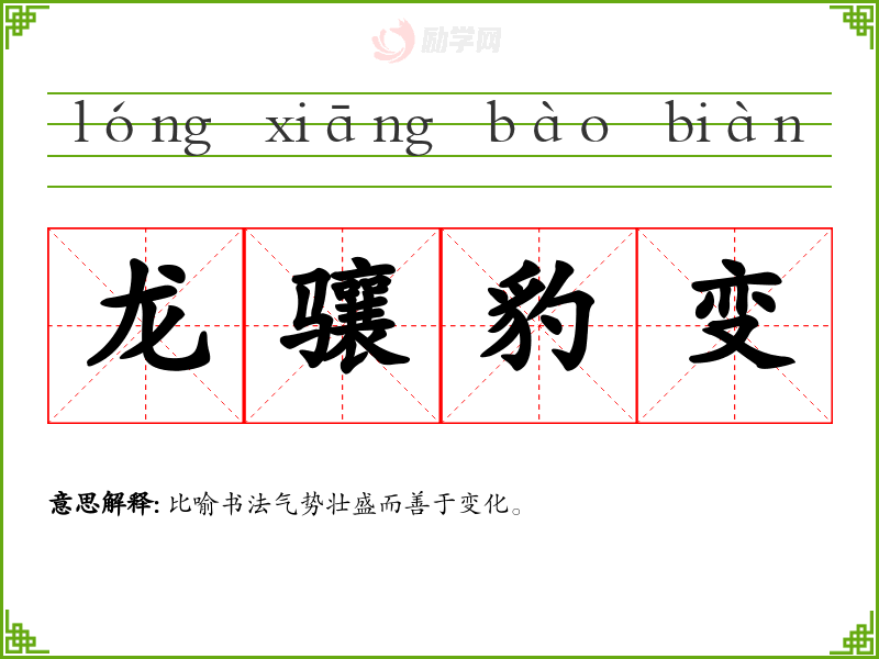 龙骧豹变的意思是:比喻书法气势壮盛而善于变化。