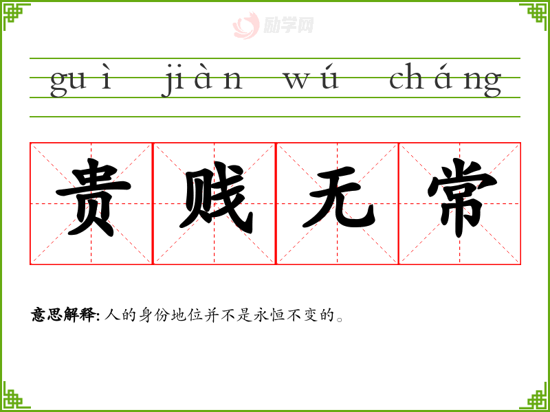 贵贱无常的意思是:人的身份地位并不是永恒不变的。