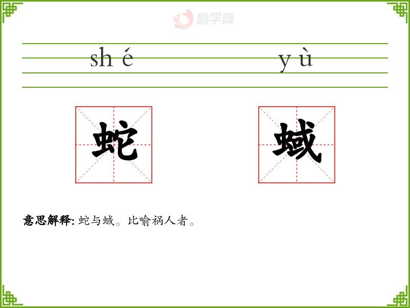 1.蛇与蜮。比喻祸人者。