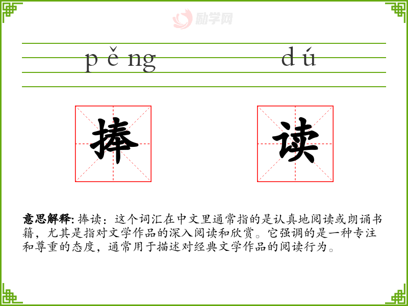 - 专业领域:在教育或文学研究领域,可能会用“捧读”来指导学生如何深入阅读和分析文学作品。