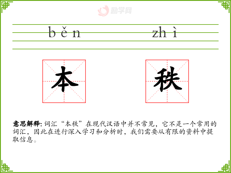 词汇“本秩”在现代汉语中并不常见,它不是一个常用的词汇,因此在进行深入学*和分析时,我们需要从有限的资料中提取信息。