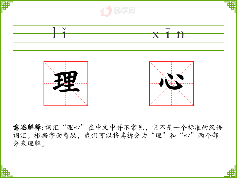 “理心”虽然不是一个常用词汇,但它提供了一个有趣的概念,即用理性去理解和处理内心的情感。在语言学习和表达中,理解这样的词汇可以帮助我们更深入地理解语言的多样性和创造性。