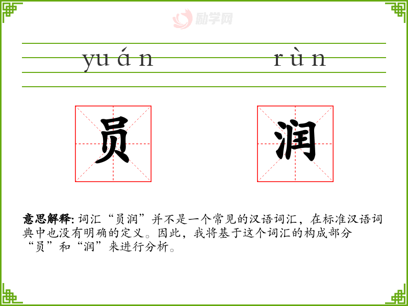 通过对“员润”这个词汇的分析,我们可以看到,即使是一个不常见的词汇,也可以通过其构成部分来推测其可能的含义和用法。在语言学习中,理解词汇的构成和语境是非常重要的。