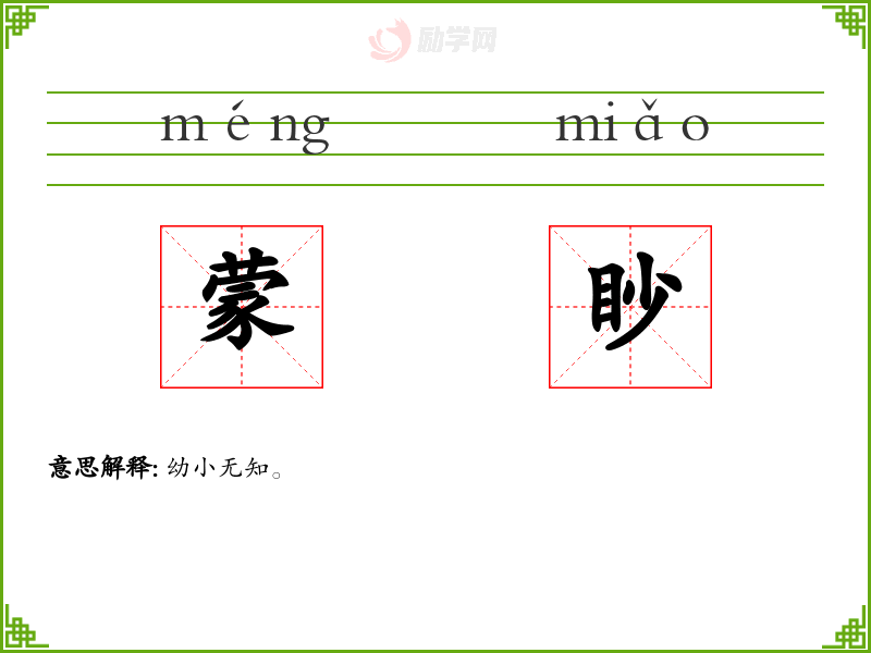 蒙[ mēng,méng,měng ] 1. 蒙古 【组词】 蒙古族 [更多解释]