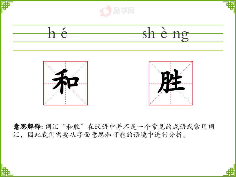 词汇“和胜”在汉语中并不是一个常见的成语或常用词汇,因此我们需要从字面意思和可能的语境中进行分析。