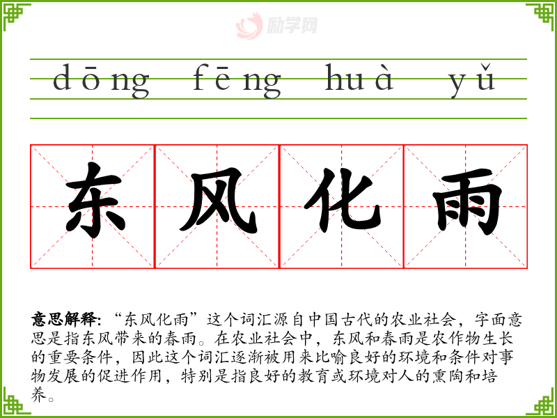 1.东风化雨的拼音是什么?东风化雨怎么读?