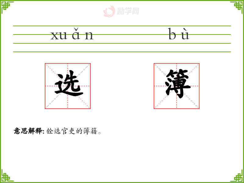 选簿的意思是:铨选官吏的簿籍。
