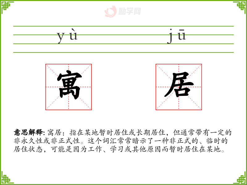 1.寓居的拼音是什么?寓居怎么读?