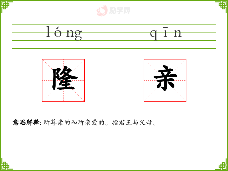 隆亲的意思是:所尊崇的和所亲爱的。指君王与父母。