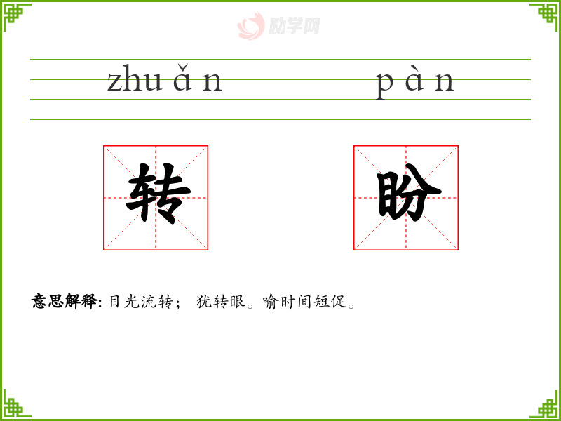 转盼的意思是:目光流转; 犹转眼。喻时间短促。