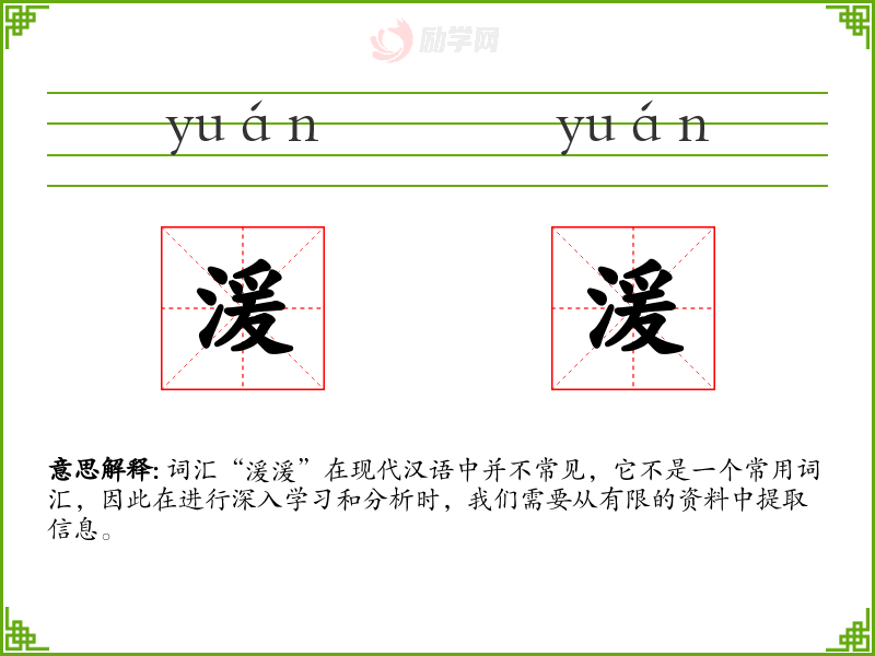 “湲湲”的词源较为模糊,可能是古汉语中形容水流缓慢的词汇,随着时间的推移,其使用频率逐渐降低,现代汉语中已不常见。