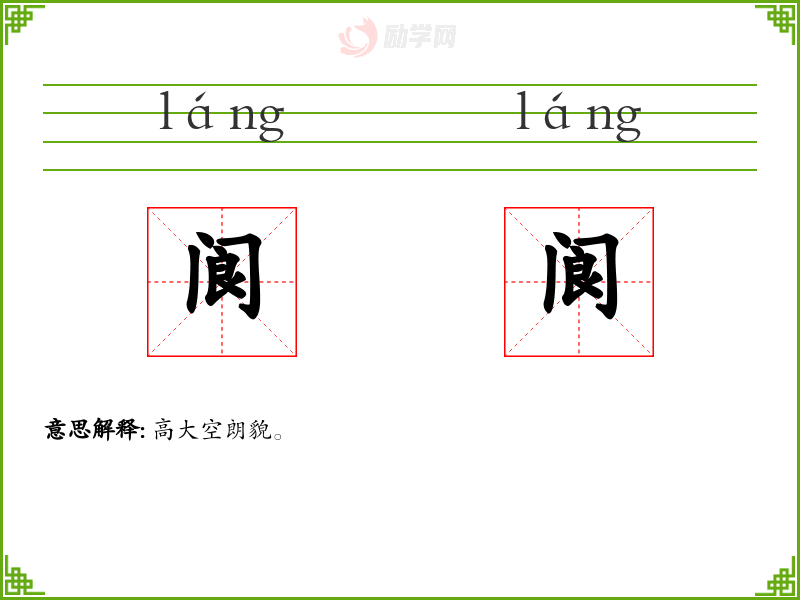 《说文》-閬,门高也。从门,良声。 《汉书·扬雄传》。注:“闶阆,空虚也。”-闶阆其寥廓兮。