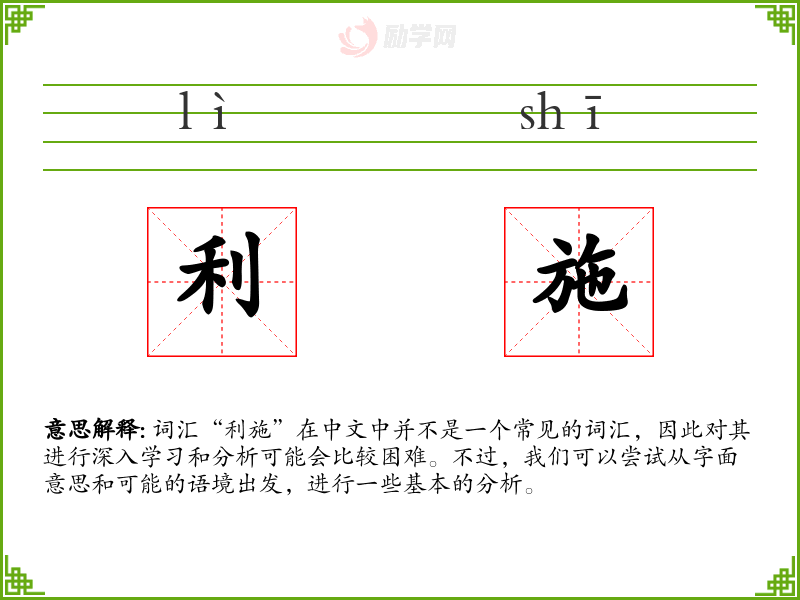 结合起来,“利施”可能指的是给予或施加利益、好处的行为或过程。