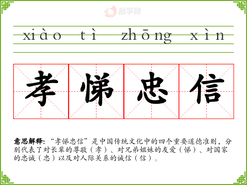1.孝悌忠信的拼音是什么?孝悌忠信怎么读?