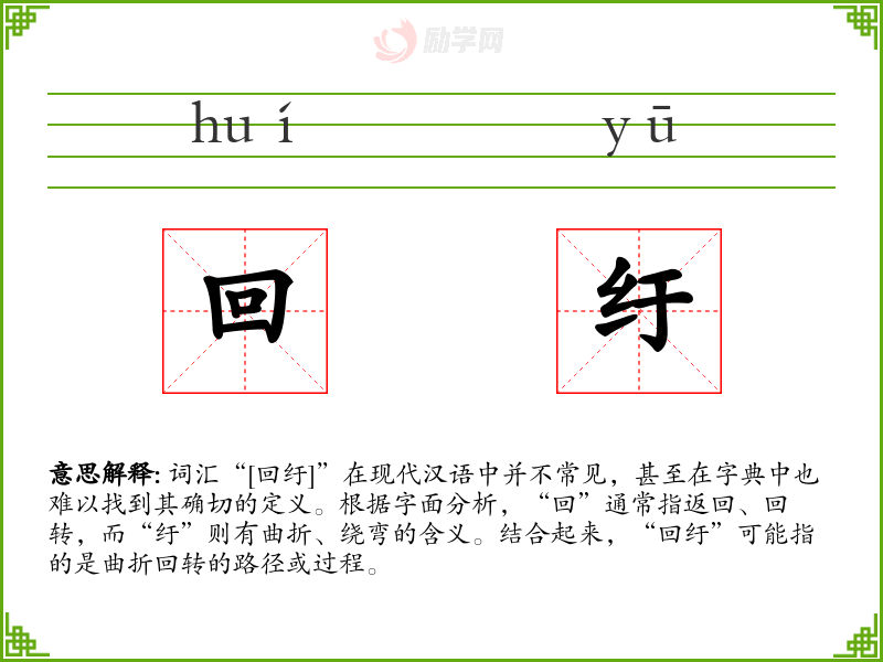 “回纡”作为一个不常见的词汇,其含义和用法较为特殊,可能在特定的文学或文化语境中有所应用。在语言学习和表达中,了解这样的词汇可以增加语言的丰富性和深度。