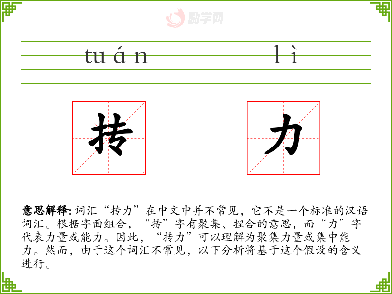 “抟力”作为一个不太常见的词汇,其含义和用法需要根据具体语境来理解。在语言学习和表达中,了解和掌握这样的词汇可以丰富表达方式,增强语言的多样性和深度。