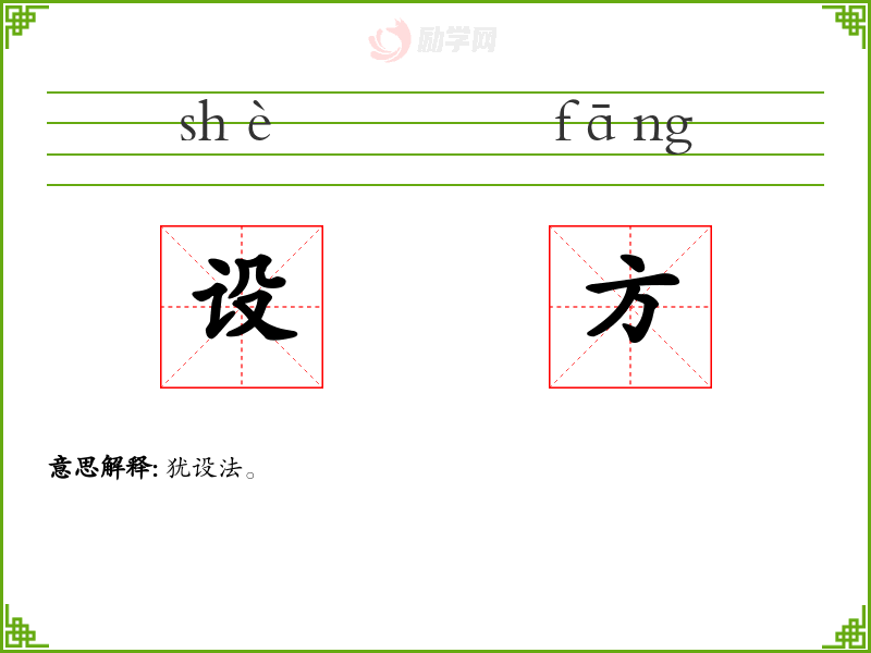 设方的意思是:犹设法。
