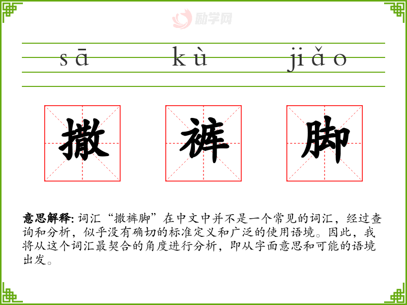 1.撒裤脚的拼音是什么?撒裤脚怎么读?