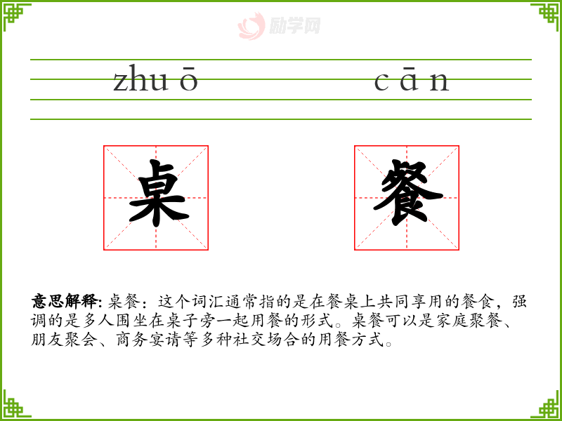 1.桌餐的拼音是什么?桌餐怎么读?