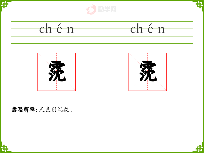 霃霃的意思是:天色阴沉貌。