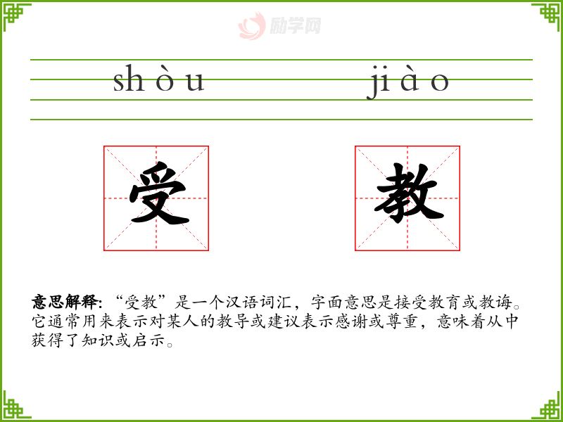 受教的拼音是:shòu jiào