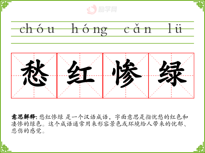 1.愁红惨绿的拼音是什么?愁红惨绿怎么读?