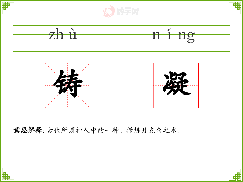 铸凝的意思是:古代所谓神人中的一种。擅炼丹点金之术。