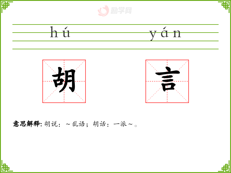 胡言的意思是:胡说:~乱语;胡话:一派~。