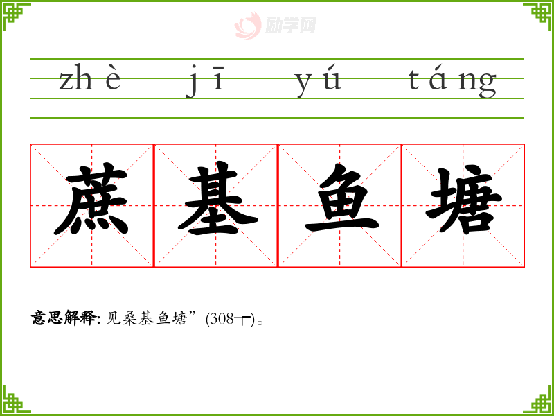 蔗基鱼塘的拼音是:zhè jī yú táng