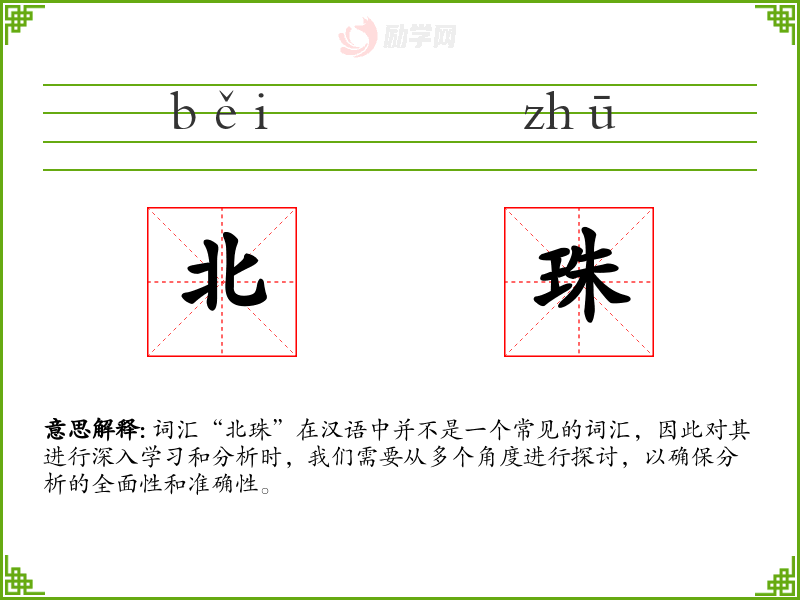 词汇“北珠”在汉语中并不是一个常见的词汇,因此对其进行深入学*和分析时,我们需要从多个角度进行探讨,以确保分析的全面性和准确性。
