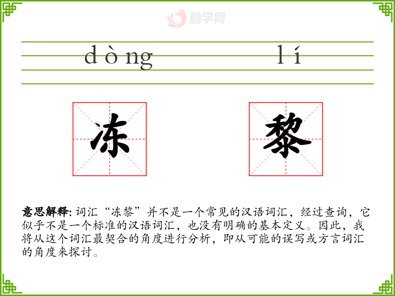 由于“冻黎”不是一个标准词汇,我们无法探讨其词源和历史演变。