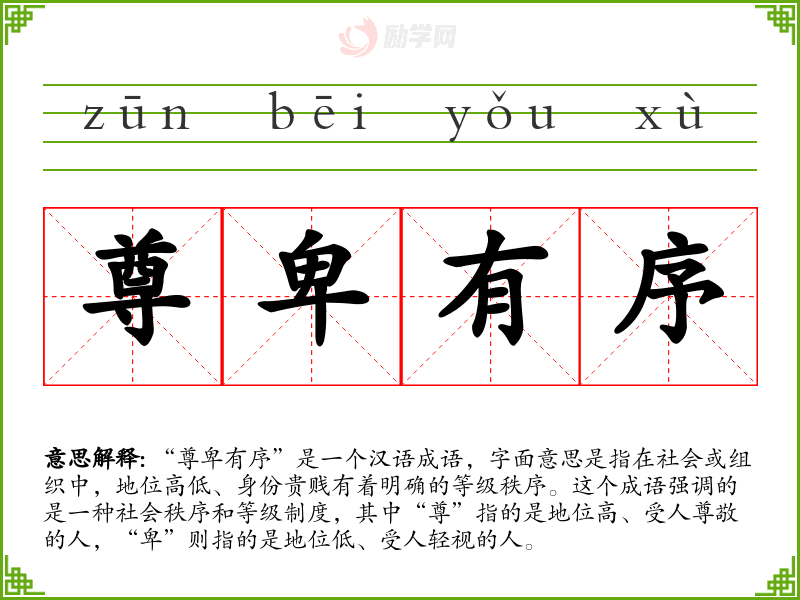 1.尊卑有序的拼音是什么?尊卑有序怎么读?
